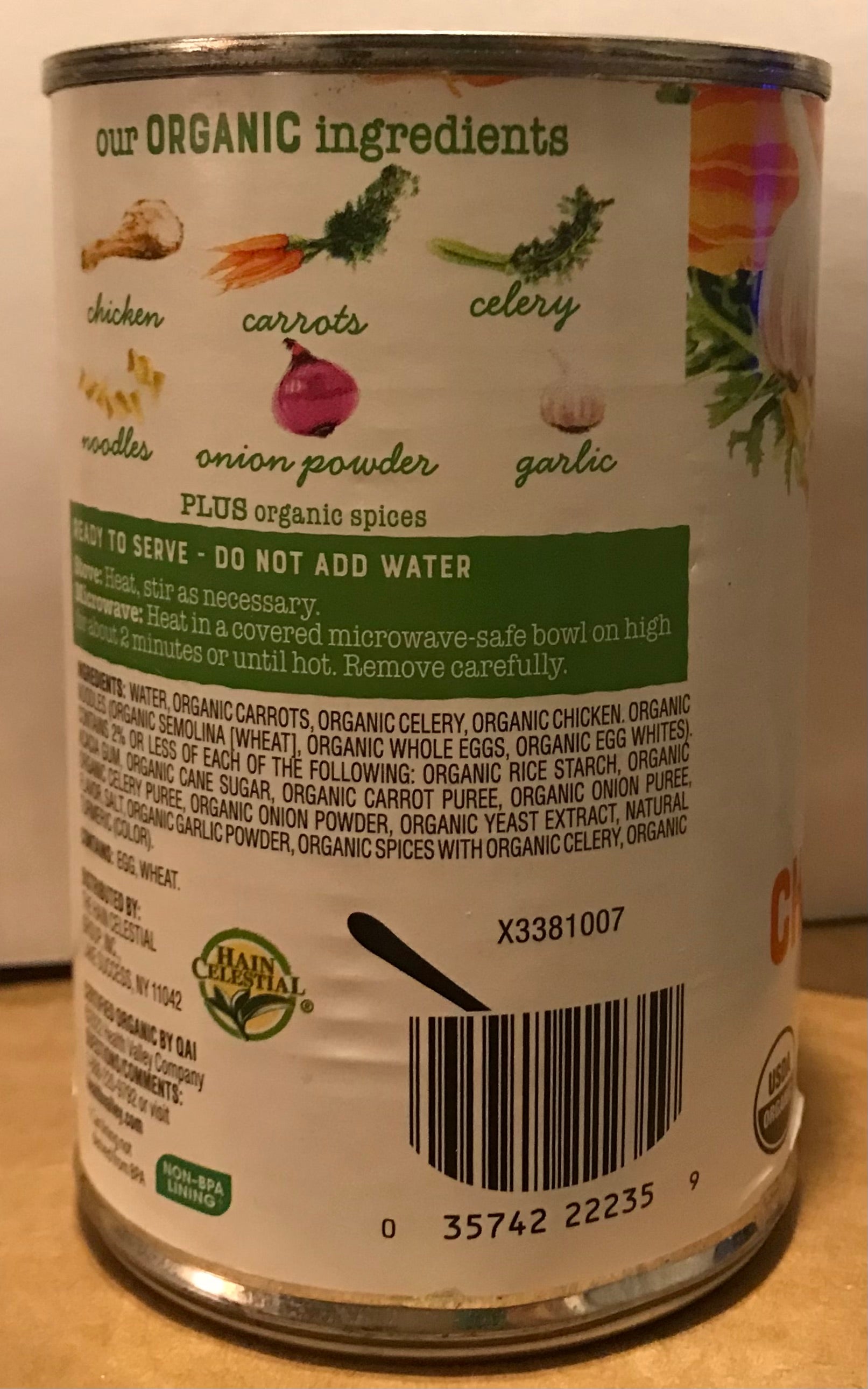 Health Valley organic Chicken Noodle Soup is made with the finest ingredients. Ready to Heat and serve. Do not add water. The top 3 leading brands of chicken soup contain an average of 680 mg Sodium per Serving. This Health Valley low sodium Chicken Noodle Soup has 115 mg per serving.